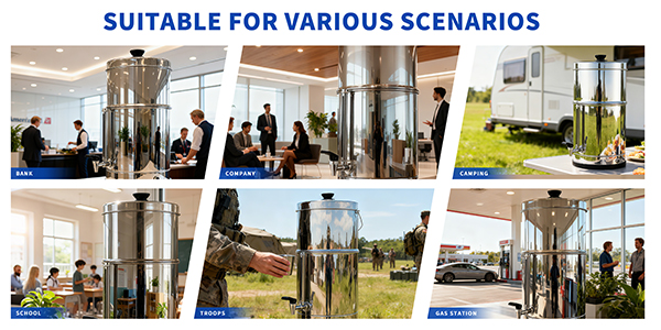 4. Schools and Hospitals: In rural clinics and boarding schools with unstable voltage or a shortage of maintenance personnel, the stainless steel gravity water filter can serve 50–100 people per day as a terminal water purification station, significantly reducing the incidence of waterborne diseases such as diarrhea